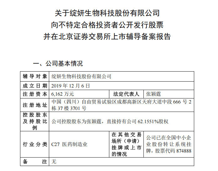 就在前一天△…,中国证券监督管理委员会四川监管局官网披露《关于绽妍生物科技股份有限公司向不特定合格投资者公开发行股票并在北京证券交易所上市辅导备案报告》★,标志着这家深耕生物医用材料与皮肤学级护肤品的企业正式步入北交所上市轨道。