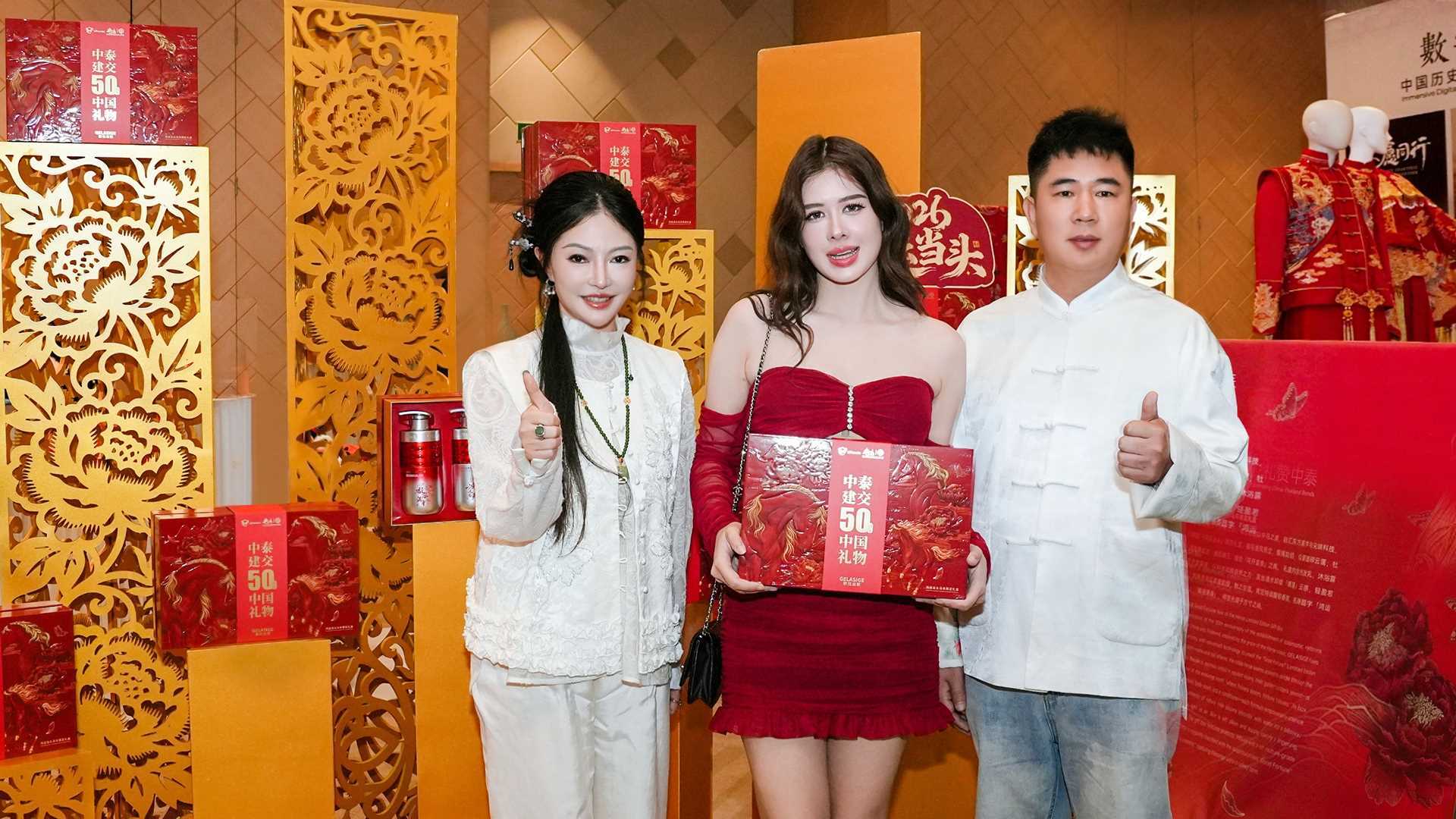 其他展位同样亮点纷呈:在中国礼物展区,博洋家纺展出在巴黎时装周发布的具有中国婚嫁文化的龙凤呈祥系列;在艺术展区,墨谷画廊展出当代艺术家徐善循的画作,其创始人郭华鹏现场赠送《百合系列》给曼谷市长查猜·西提邦;在数字展区,“大美敦煌”“布达拉宫”“秦朝觉醒”三大中国历史名迹沉浸式数字VR展人气高涨。