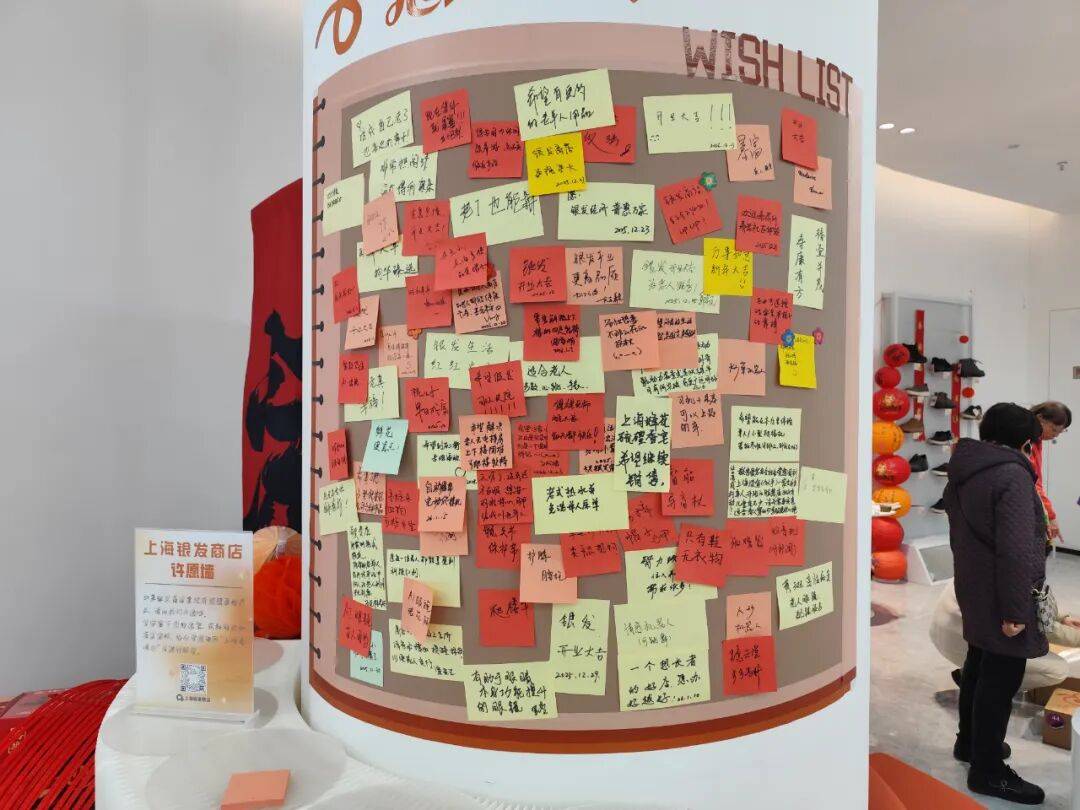 值得一提的是,该店还特别设置了“许愿墙”。“希望假发可以常驻”“店里应该售卖适老服装”等是老年顾客留在墙上的需求和愿望。据店员介绍,最近,“提议售卖腰托和护膝”的愿望已经落实了。